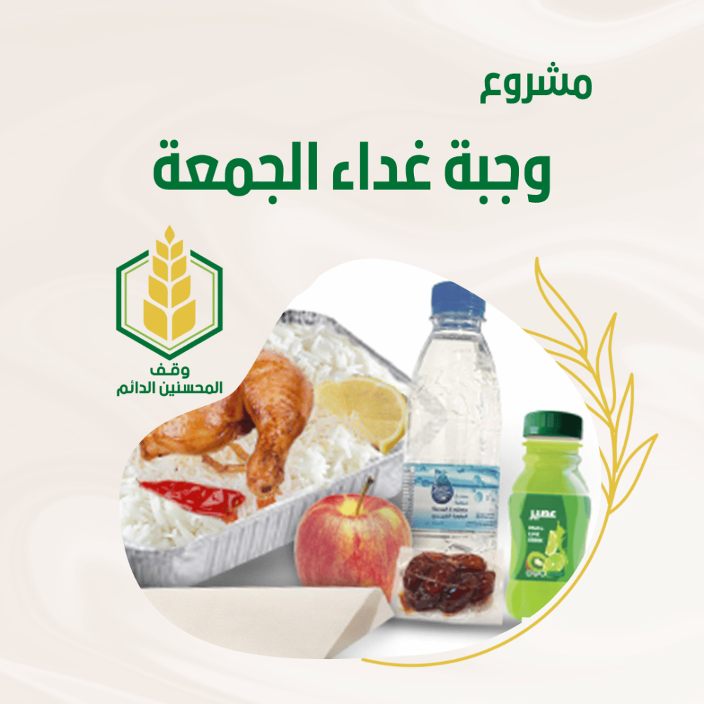 مكونات الوجبة ( ربع حبة دجاج مع الرز + سمبوسة وطرمبة + عصير + ماء )